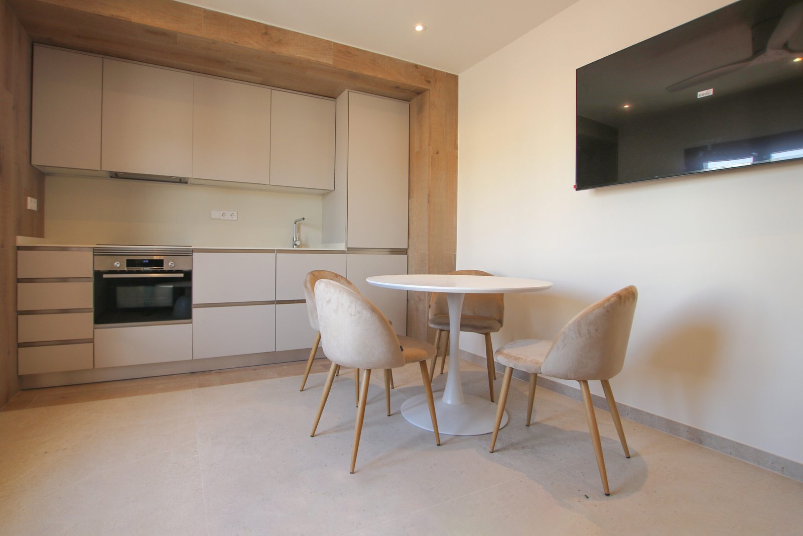 The residence forms part of a fully restored building equipped with elevator access and designed to combine architectural heritage with modern comfort. The apartment has been completely renovated using natural stone flooring and high-quality finishes throughout. Its open-plan living area integrates a contemporary kitchen equipped with premium Bosch appliances, while two well-proportioned bedrooms with built-in wardrobes provide comfort and practicality. The modern bathroom features a spacious walk-in shower and suspended toilet, and a private balcony offers outdoor space overlooking the port. Climalit double-glazed windows ensure acoustic insulation and year-round thermal efficiency, enhancing comfort in this prime central location.