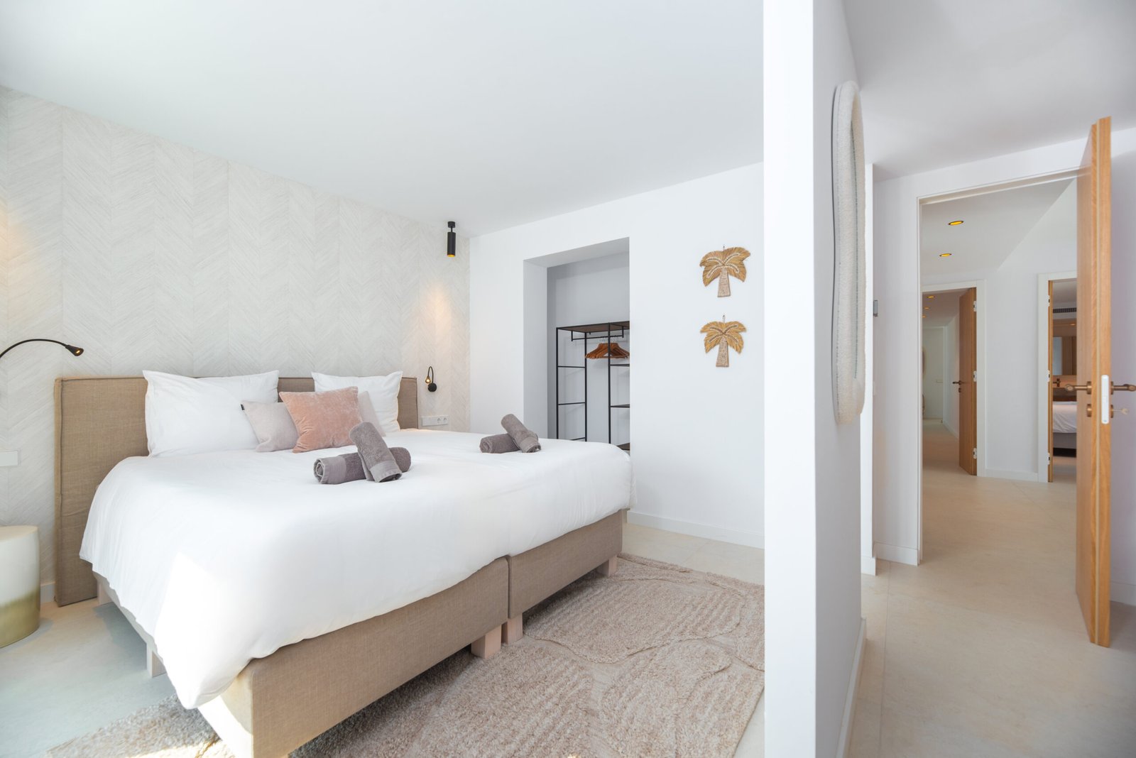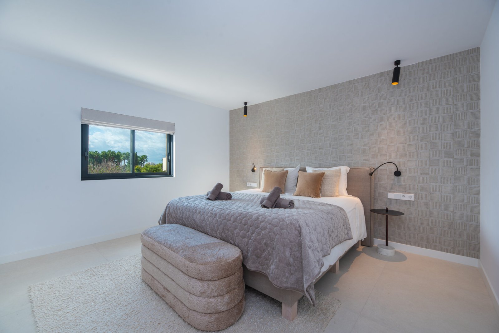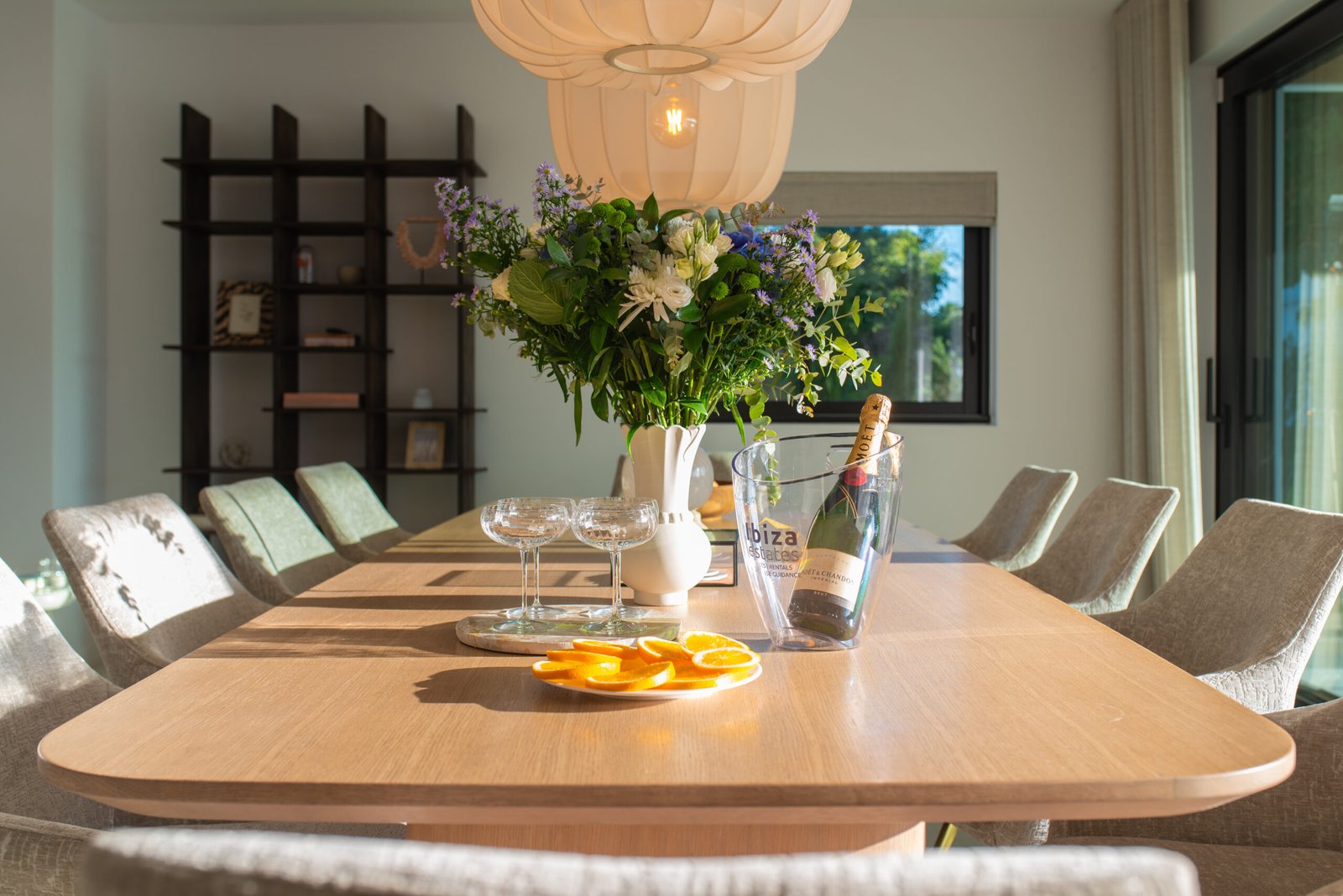 Set in the sought after area of Can Ramón, this refined five bedroom villa presents a rare opportunity to acquire a fully licensed luxury property in one of Ibiza’s most strategic locations. Just minutes from Ibiza Town, Marina Botafoch and Talamanca Beach, the villa combines privacy with effortless access to the island’s most desirable lifestyle destinations. Designed with a clean, contemporary aesthetic and subtle bohemian accents, the property offers approximately 370 m² of living space on a 943 m² plot. The interiors are defined by natural light, open volumes and a seamless indoor outdoor flow. A spacious living and dining area with fireplace connects directly to a covered terrace, creating an ideal setting for both relaxed living and entertaining. The fully fitted modern kitchen with marble island serves as a central social point, while all five bedrooms feature en suite bathrooms with high end finishes, including marble details and walk in showers. The master suite stands out with a freestanding bathtub and tranquil countryside views. Outdoor areas are designed for lifestyle. A private swimming pool, sun loungers, landscaped garden and multiple lounge and dining zones offer a complete Mediterranean experience. The outdoor kitchen and barbecue area further elevate the property, making it equally suited for private enjoyment or high yielding rental use. With a valid rental license, this villa is not only a sophisticated residence but also a strong investment asset in Ibiza’s consistently high demand luxury market.