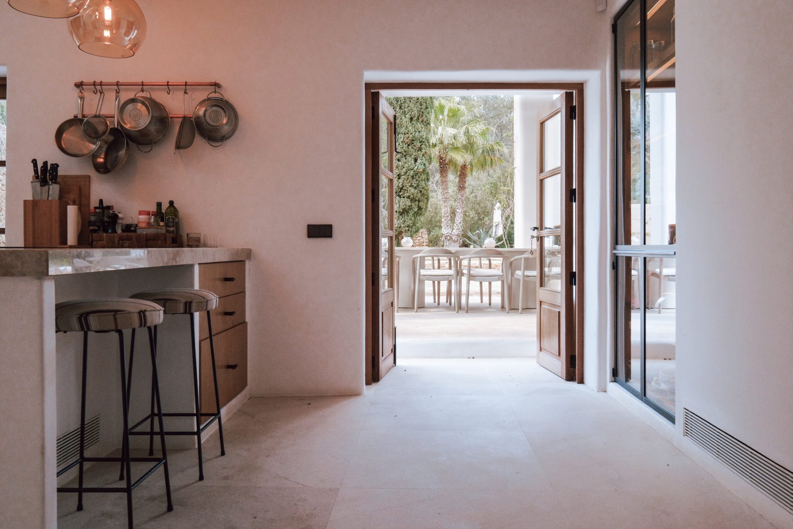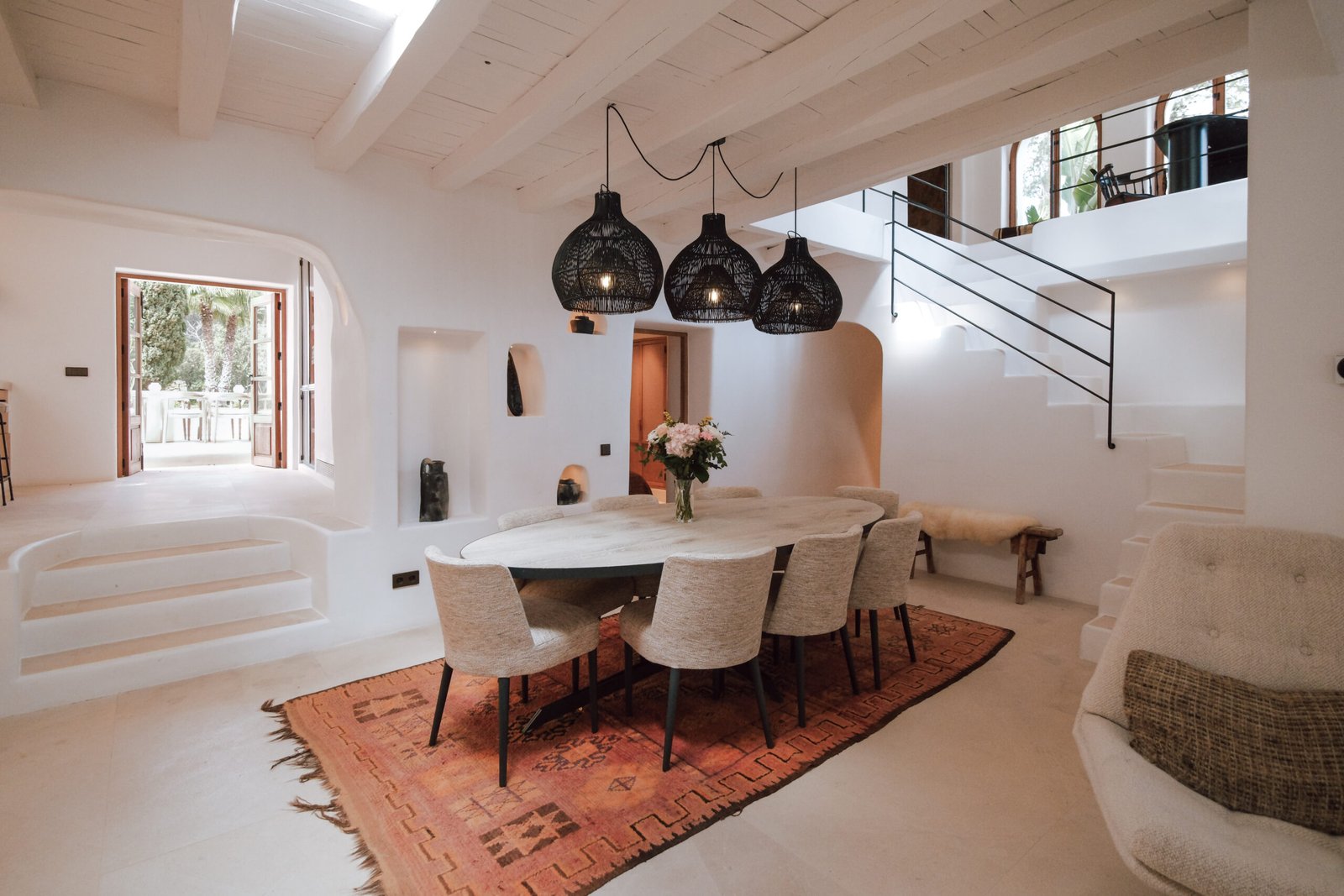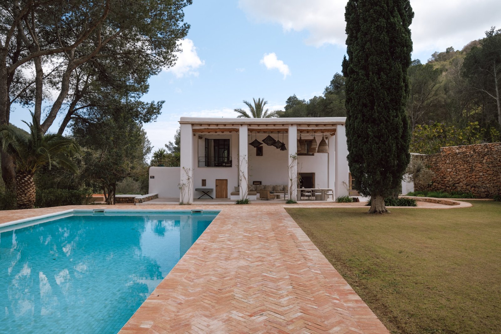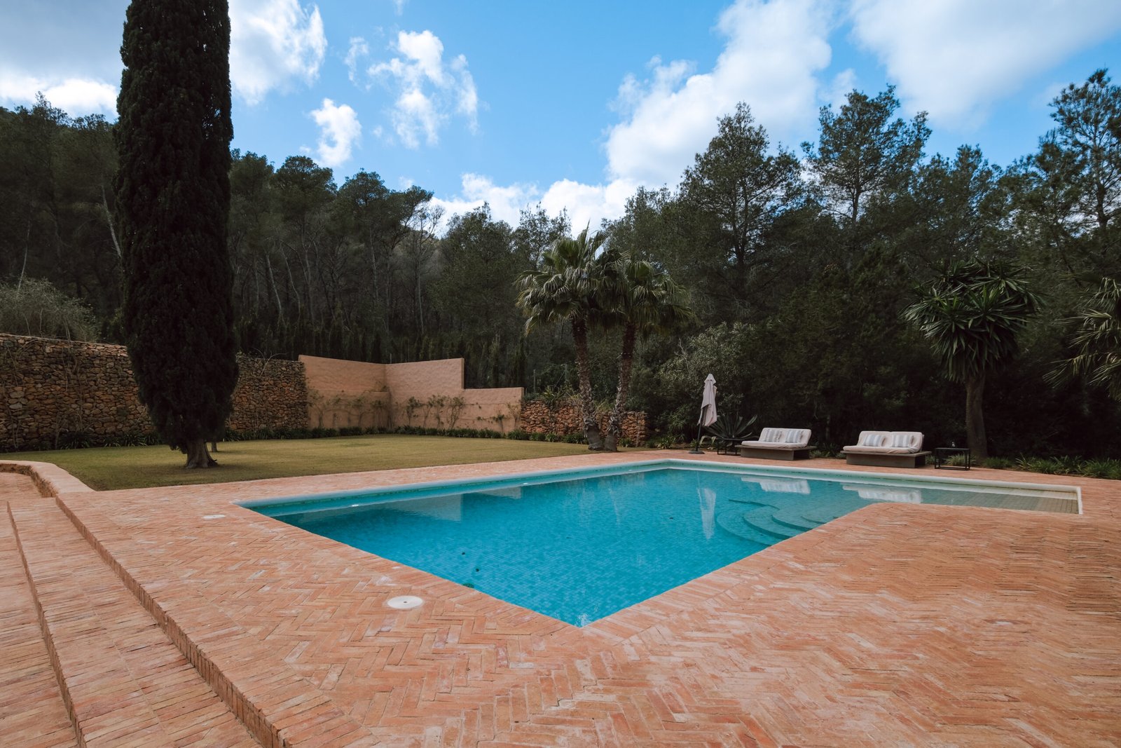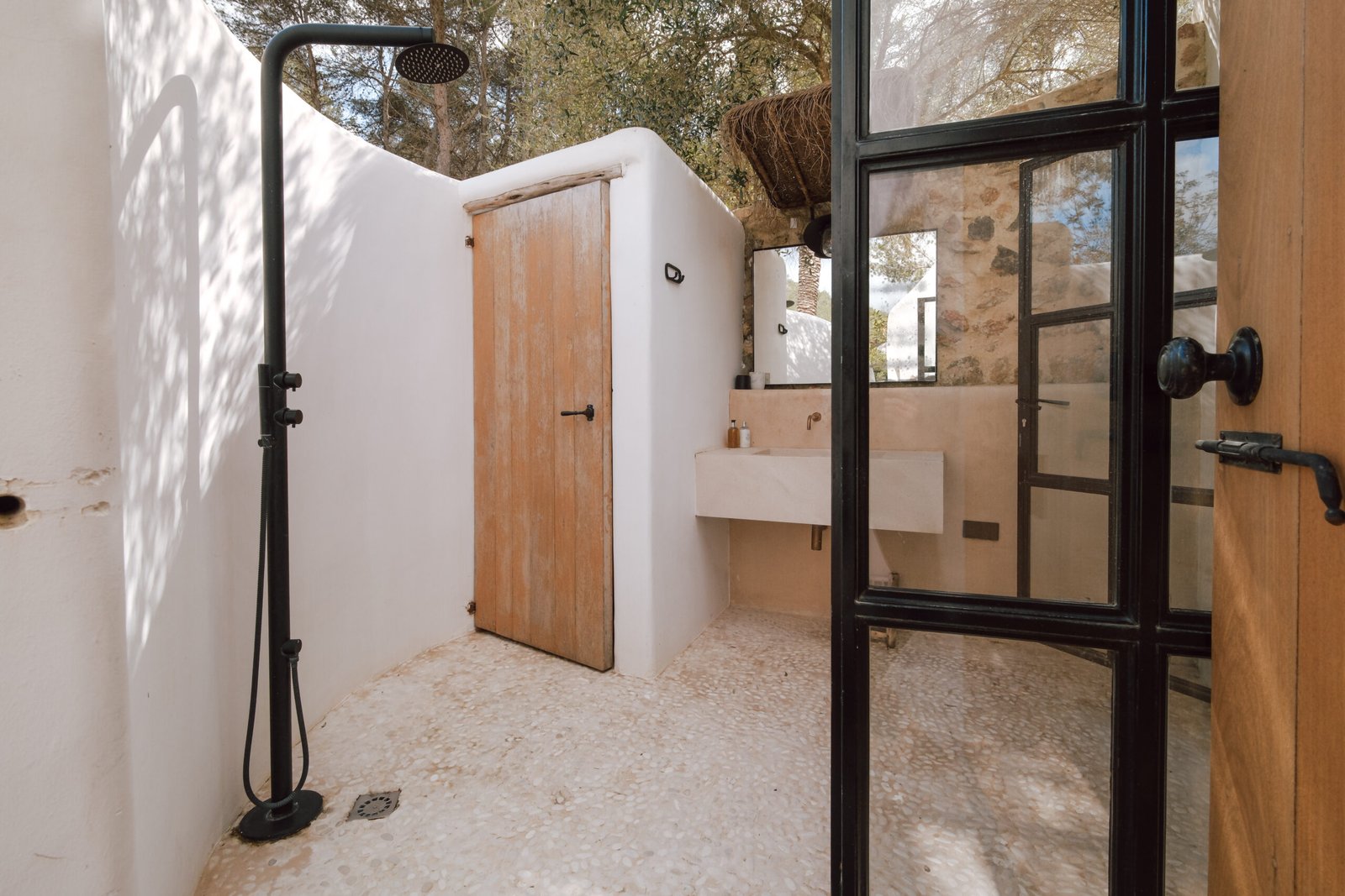 Set within a peaceful natural environment surrounded by pine forests, this refined finca offers a unique blend of organic design, modern comfort, and authentic Ibiza charm. Designed with a strong focus on natural materials and soft architectural lines, the property creates a calm and grounded atmosphere that feels both elegant and inviting. The interiors are thoughtfully crafted, featuring custom built elements, integrated seating, and warm Sabina wood ceilings that preserve the heritage of the home while introducing a contemporary aesthetic. The open living spaces flow effortlessly into a minimalist kitchen with wooden cabinetry, marble surfaces, and high-quality integrated appliances, creating a functional yet visually harmonious environment. Five beautifully designed bedrooms offer a sense of tranquility and privacy, including a principal suite with an en suite bathroom and private balcony overlooking the surrounding nature. One of the suites features a distinctive outdoor bathroom with a rainfall shower and natural stone finishes, enhancing the connection between indoor and outdoor living. The exterior spaces are designed for relaxed Mediterranean living, with landscaped gardens, a spacious lawn, and a 10 meter swimming pool. A dedicated dining terrace with an outdoor kitchen and pizza oven provides the perfect setting for entertaining or enjoying quiet moments immersed in nature. This finca represents a rare opportunity to experience a lifestyle defined by privacy, design, and connection to the natural surroundings, while maintaining a high level of comfort and understated luxury.