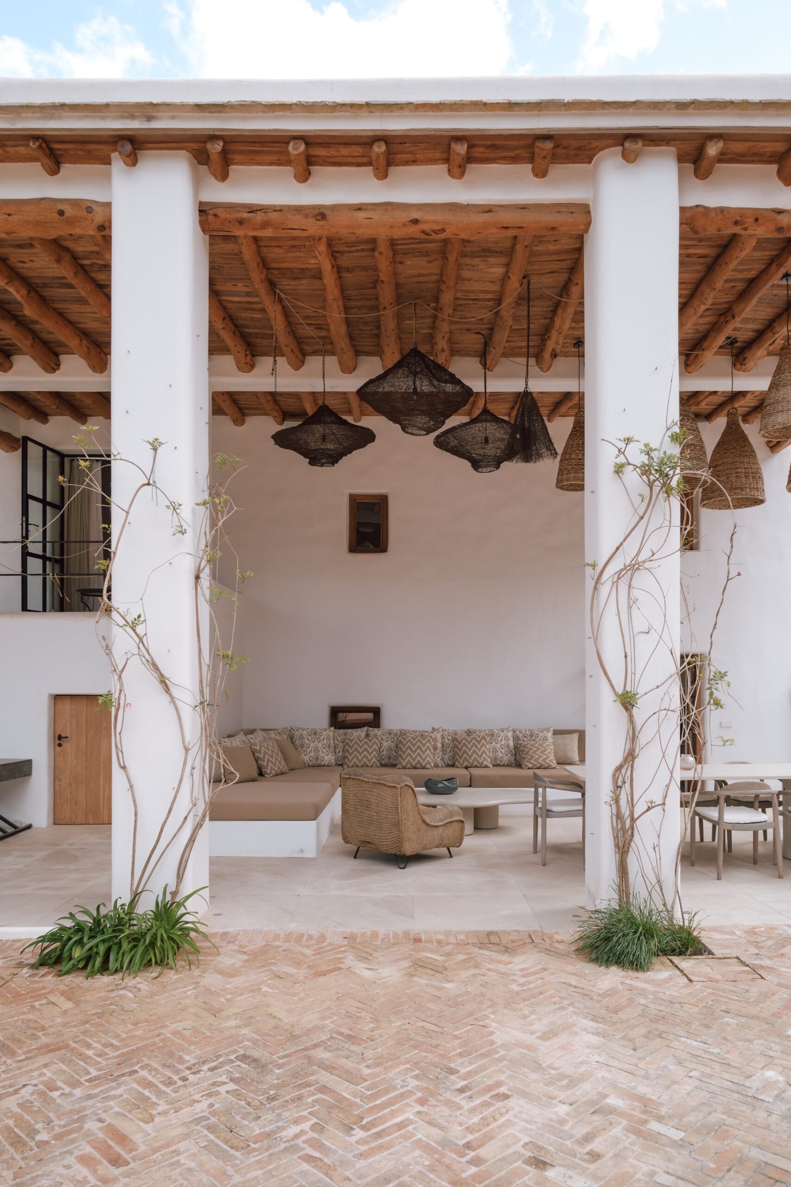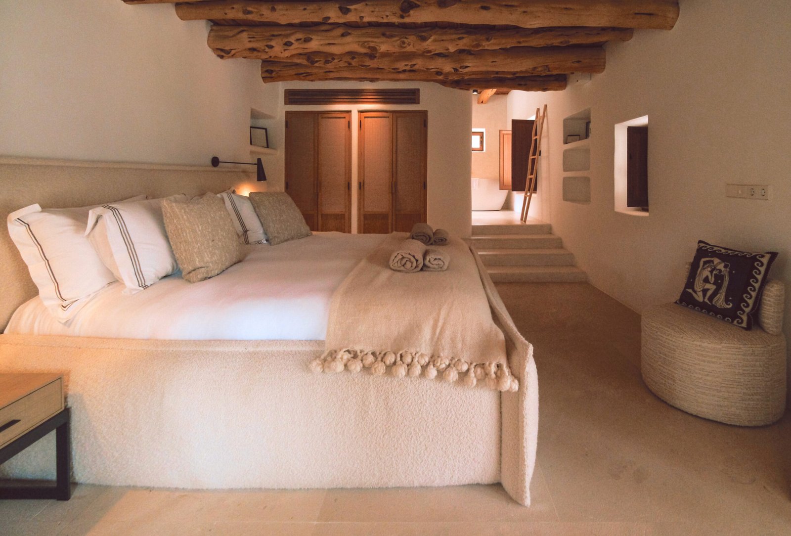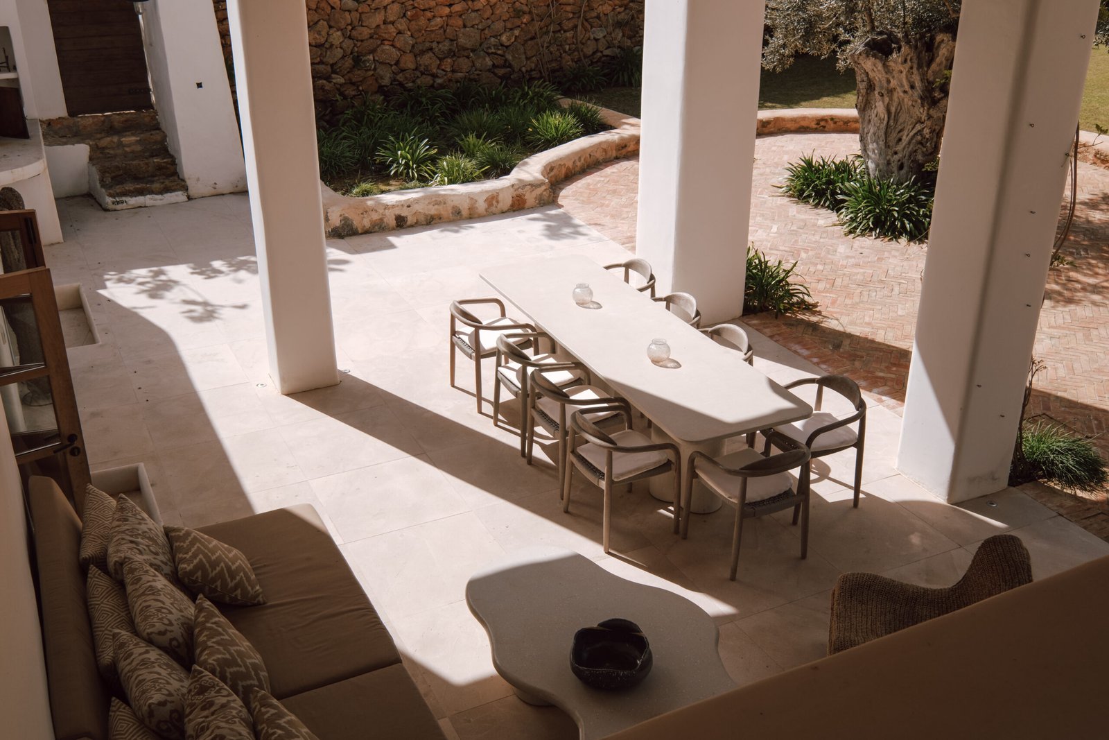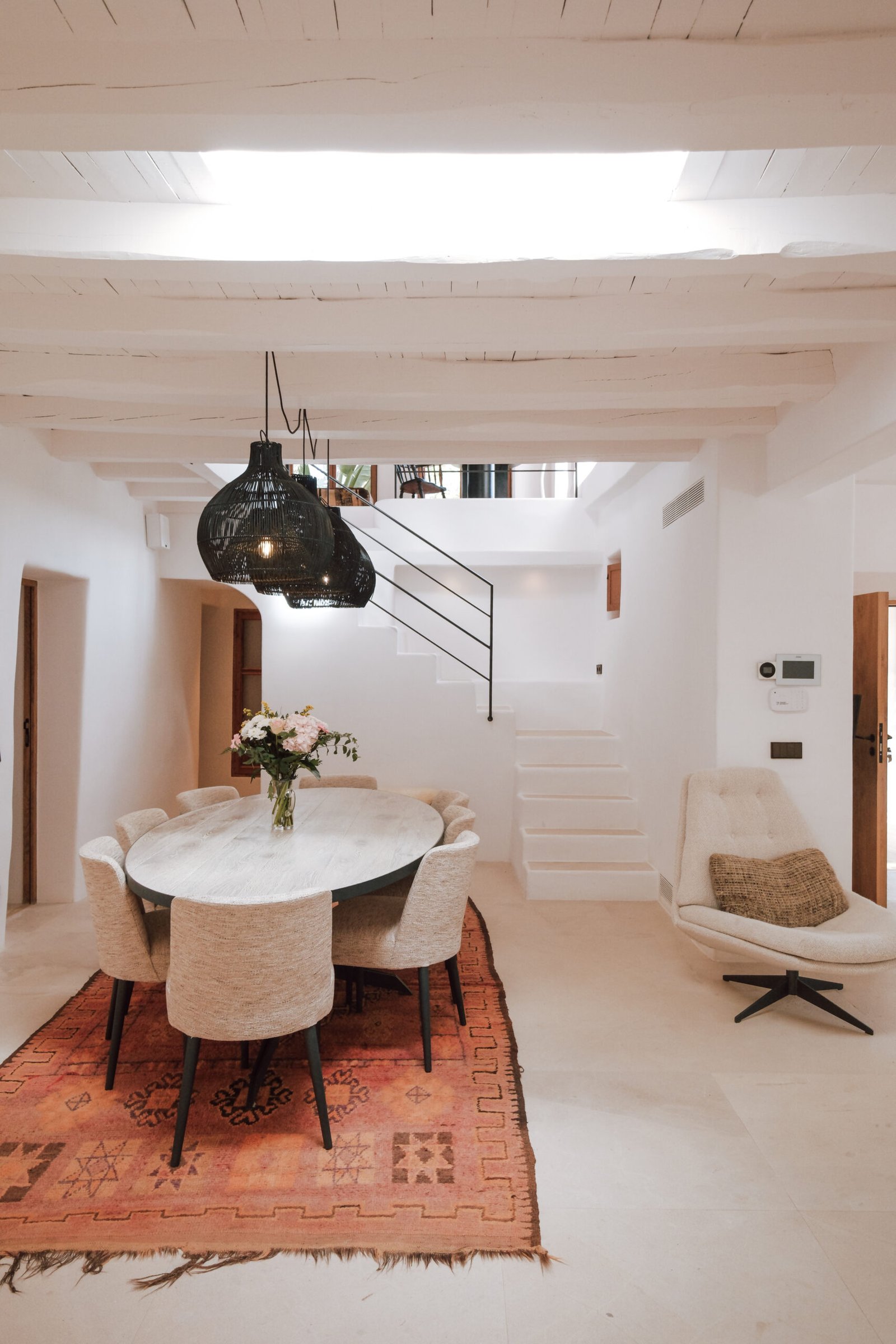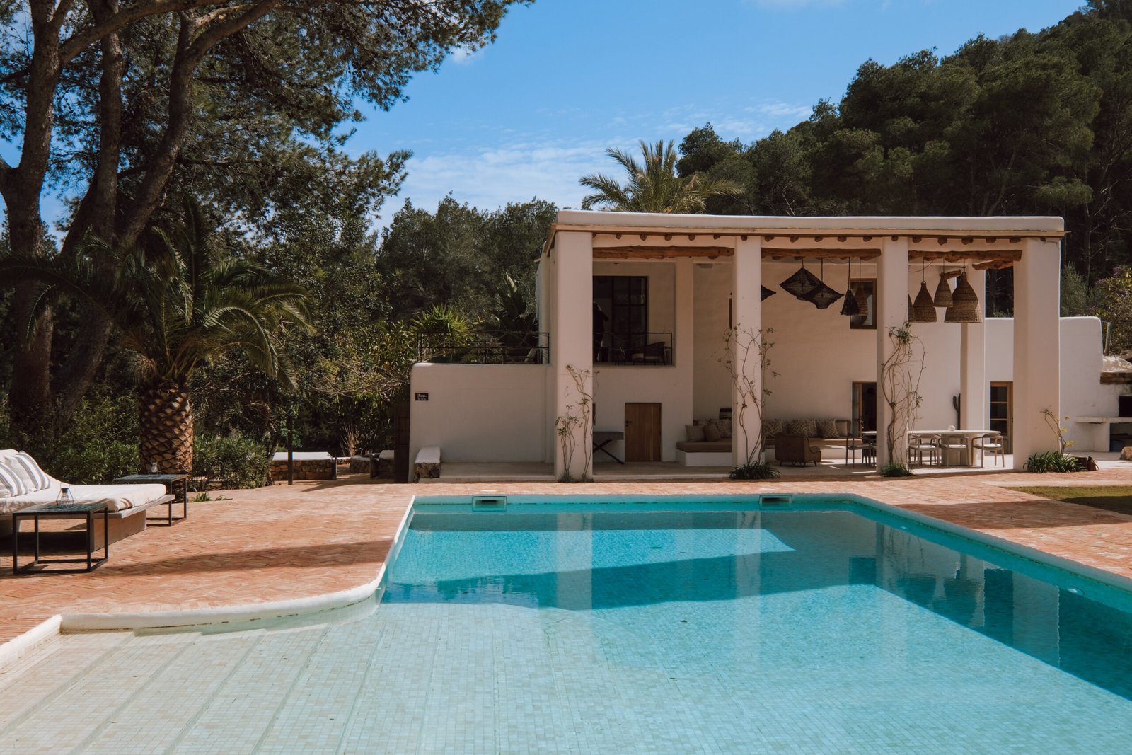 Set within a peaceful natural environment surrounded by pine forests, this refined finca offers a unique blend of organic design, modern comfort, and authentic Ibiza charm. Designed with a strong focus on natural materials and soft architectural lines, the property creates a calm and grounded atmosphere that feels both elegant and inviting. The interiors are thoughtfully crafted, featuring custom built elements, integrated seating, and warm Sabina wood ceilings that preserve the heritage of the home while introducing a contemporary aesthetic. The open living spaces flow effortlessly into a minimalist kitchen with wooden cabinetry, marble surfaces, and high-quality integrated appliances, creating a functional yet visually harmonious environment. Five beautifully designed bedrooms offer a sense of tranquility and privacy, including a principal suite with an en suite bathroom and private balcony overlooking the surrounding nature. One of the suites features a distinctive outdoor bathroom with a rainfall shower and natural stone finishes, enhancing the connection between indoor and outdoor living. The exterior spaces are designed for relaxed Mediterranean living, with landscaped gardens, a spacious lawn, and a 10 meter swimming pool. A dedicated dining terrace with an outdoor kitchen and pizza oven provides the perfect setting for entertaining or enjoying quiet moments immersed in nature. This finca represents a rare opportunity to experience a lifestyle defined by privacy, design, and connection to the natural surroundings, while maintaining a high level of comfort and understated luxury.