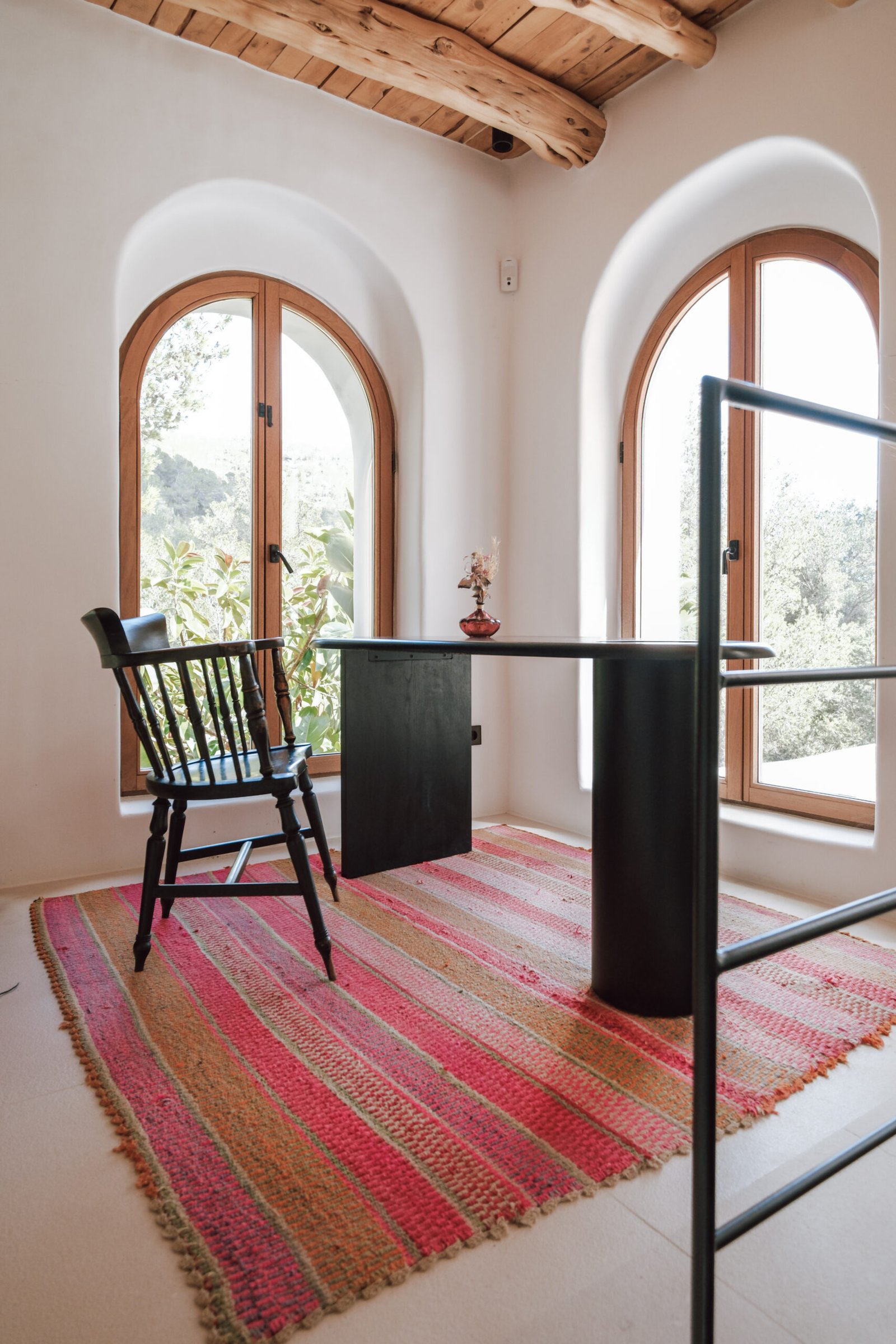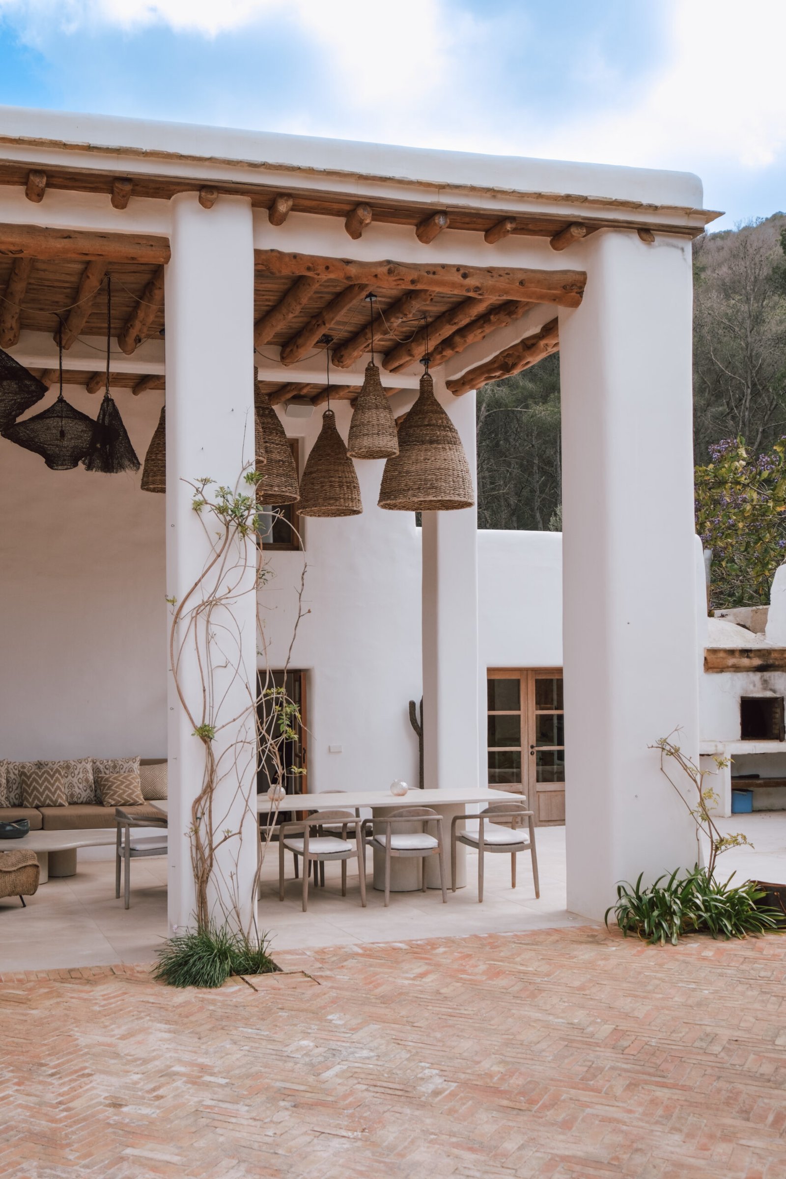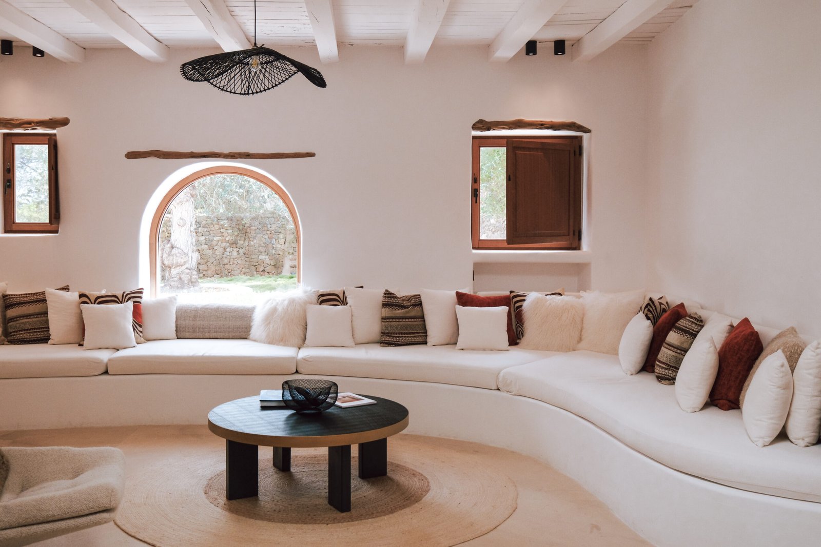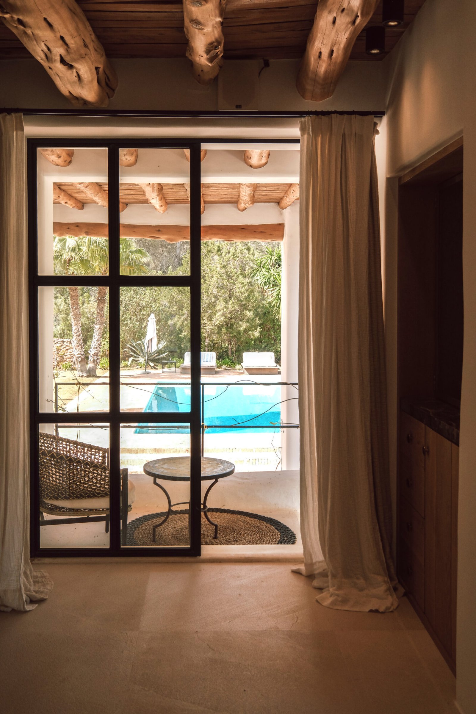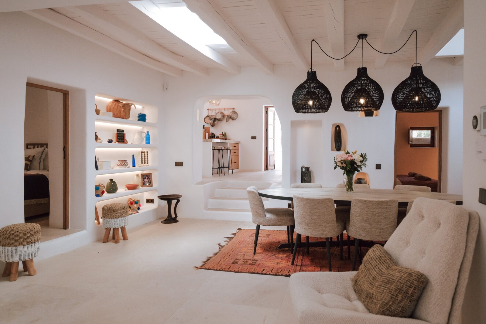 Set within a peaceful natural environment surrounded by pine forests, this refined finca offers a unique blend of organic design, modern comfort, and authentic Ibiza charm. Designed with a strong focus on natural materials and soft architectural lines, the property creates a calm and grounded atmosphere that feels both elegant and inviting. The interiors are thoughtfully crafted, featuring custom built elements, integrated seating, and warm Sabina wood ceilings that preserve the heritage of the home while introducing a contemporary aesthetic. The open living spaces flow effortlessly into a minimalist kitchen with wooden cabinetry, marble surfaces, and high-quality integrated appliances, creating a functional yet visually harmonious environment. Five beautifully designed bedrooms offer a sense of tranquility and privacy, including a principal suite with an en suite bathroom and private balcony overlooking the surrounding nature. One of the suites features a distinctive outdoor bathroom with a rainfall shower and natural stone finishes, enhancing the connection between indoor and outdoor living. The exterior spaces are designed for relaxed Mediterranean living, with landscaped gardens, a spacious lawn, and a 10 meter swimming pool. A dedicated dining terrace with an outdoor kitchen and pizza oven provides the perfect setting for entertaining or enjoying quiet moments immersed in nature. This finca represents a rare opportunity to experience a lifestyle defined by privacy, design, and connection to the natural surroundings, while maintaining a high level of comfort and understated luxury.