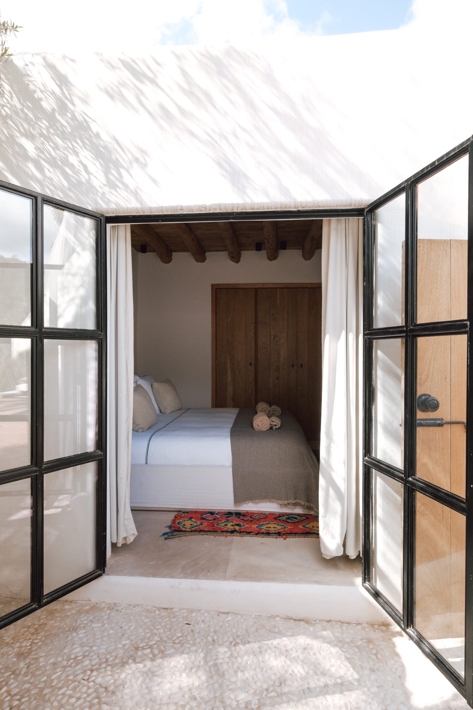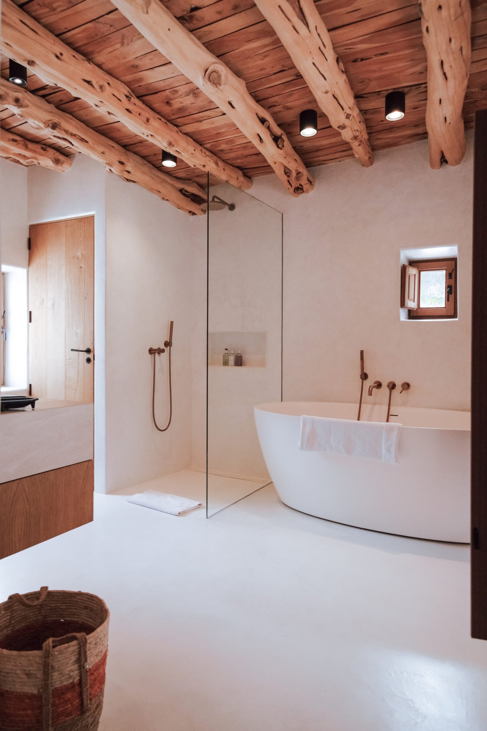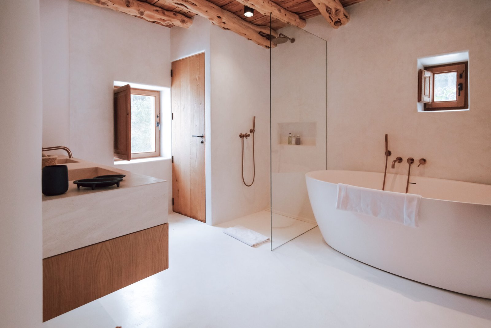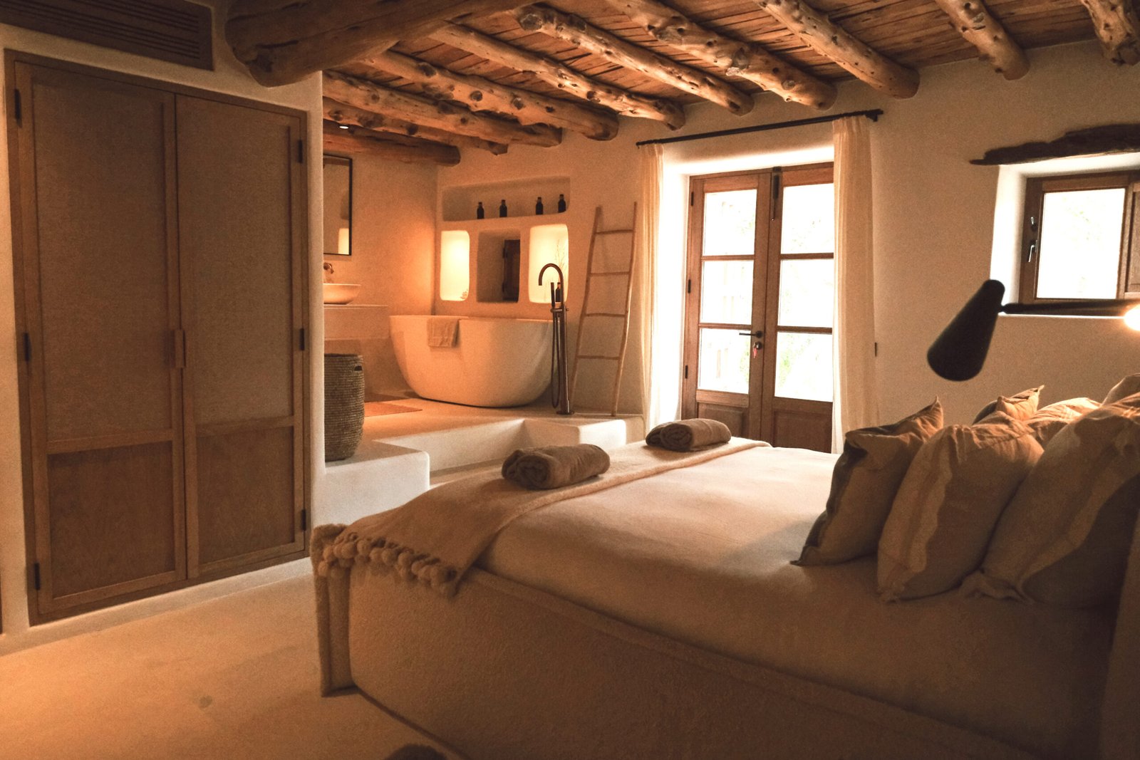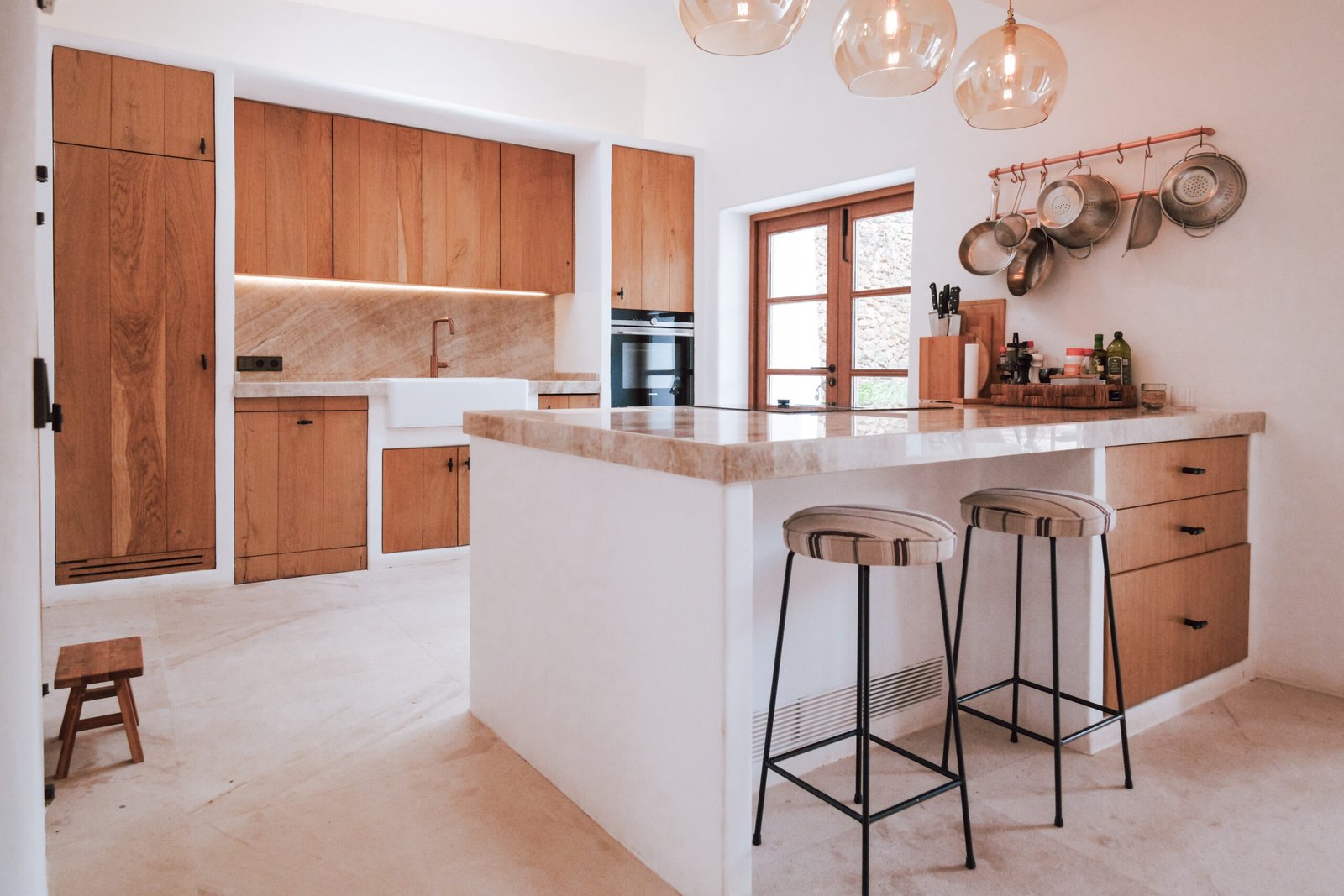 Set within a peaceful natural environment surrounded by pine forests, this refined finca offers a unique blend of organic design, modern comfort, and authentic Ibiza charm. Designed with a strong focus on natural materials and soft architectural lines, the property creates a calm and grounded atmosphere that feels both elegant and inviting. The interiors are thoughtfully crafted, featuring custom built elements, integrated seating, and warm Sabina wood ceilings that preserve the heritage of the home while introducing a contemporary aesthetic. The open living spaces flow effortlessly into a minimalist kitchen with wooden cabinetry, marble surfaces, and high-quality integrated appliances, creating a functional yet visually harmonious environment. Five beautifully designed bedrooms offer a sense of tranquility and privacy, including a principal suite with an en suite bathroom and private balcony overlooking the surrounding nature. One of the suites features a distinctive outdoor bathroom with a rainfall shower and natural stone finishes, enhancing the connection between indoor and outdoor living. The exterior spaces are designed for relaxed Mediterranean living, with landscaped gardens, a spacious lawn, and a 10 meter swimming pool. A dedicated dining terrace with an outdoor kitchen and pizza oven provides the perfect setting for entertaining or enjoying quiet moments immersed in nature. This finca represents a rare opportunity to experience a lifestyle defined by privacy, design, and connection to the natural surroundings, while maintaining a high level of comfort and understated luxury.