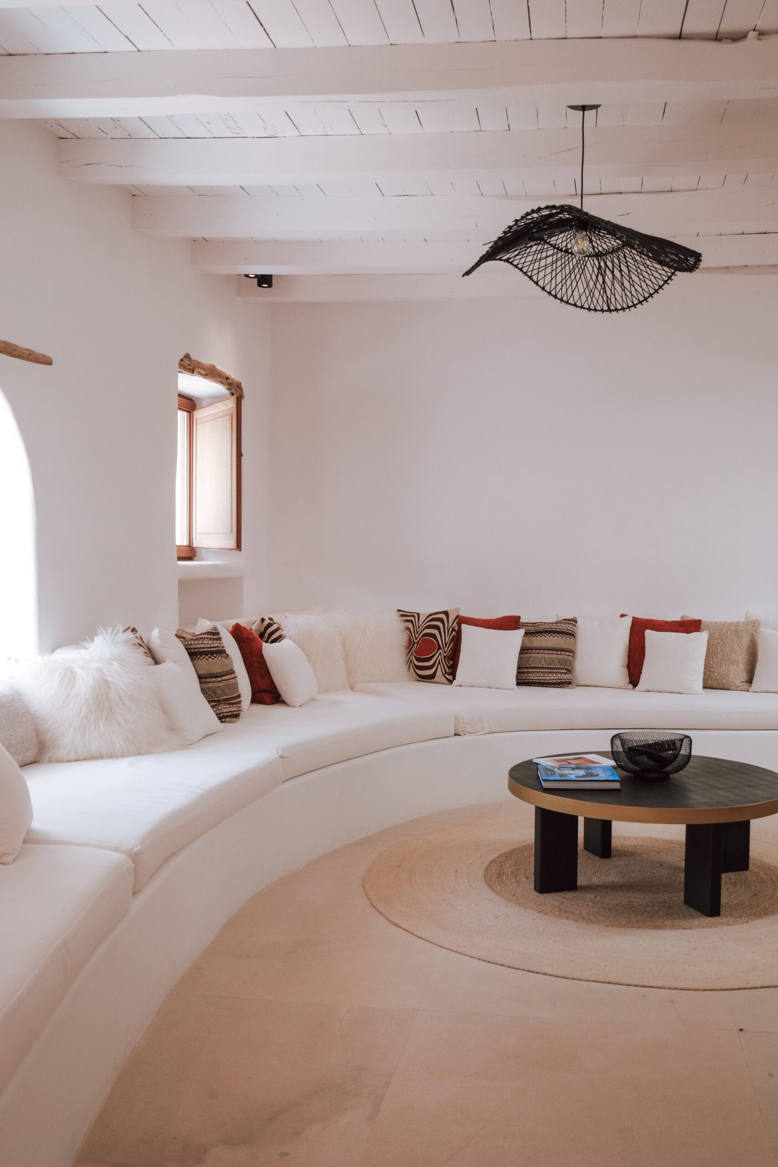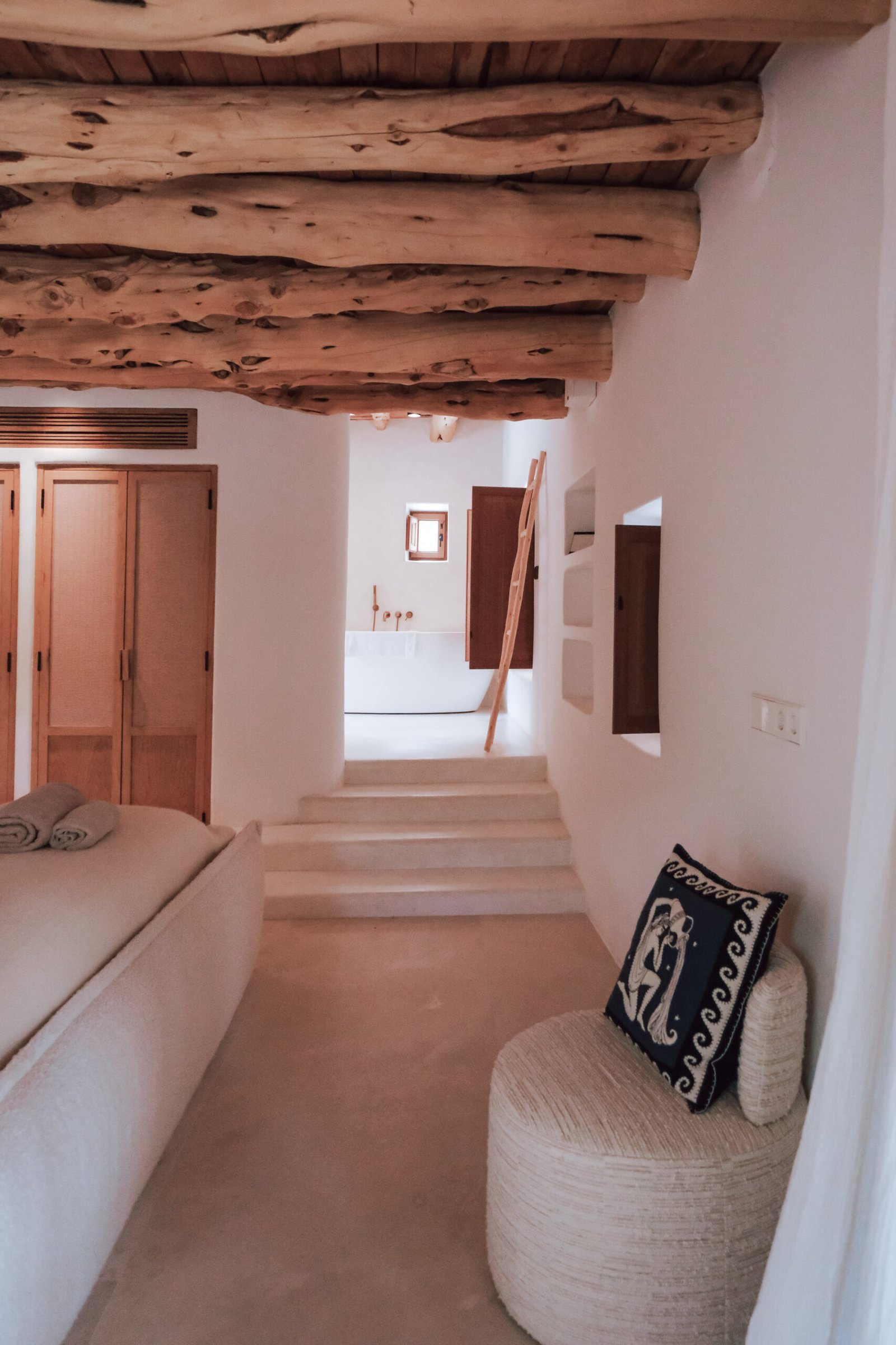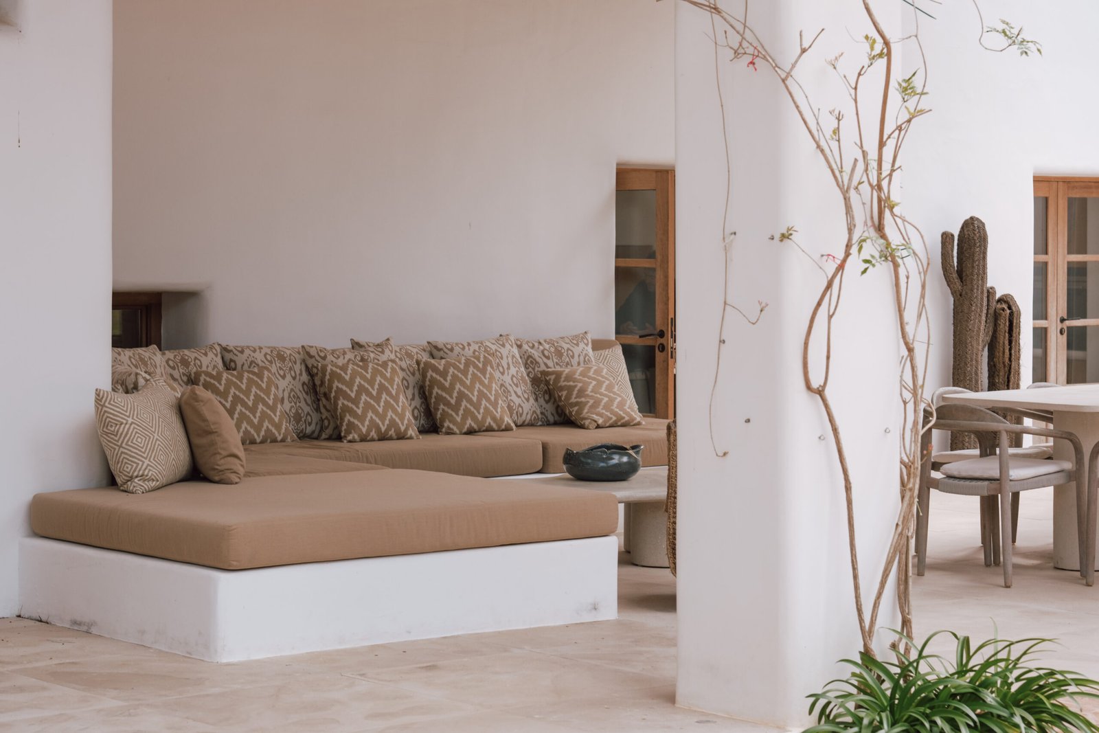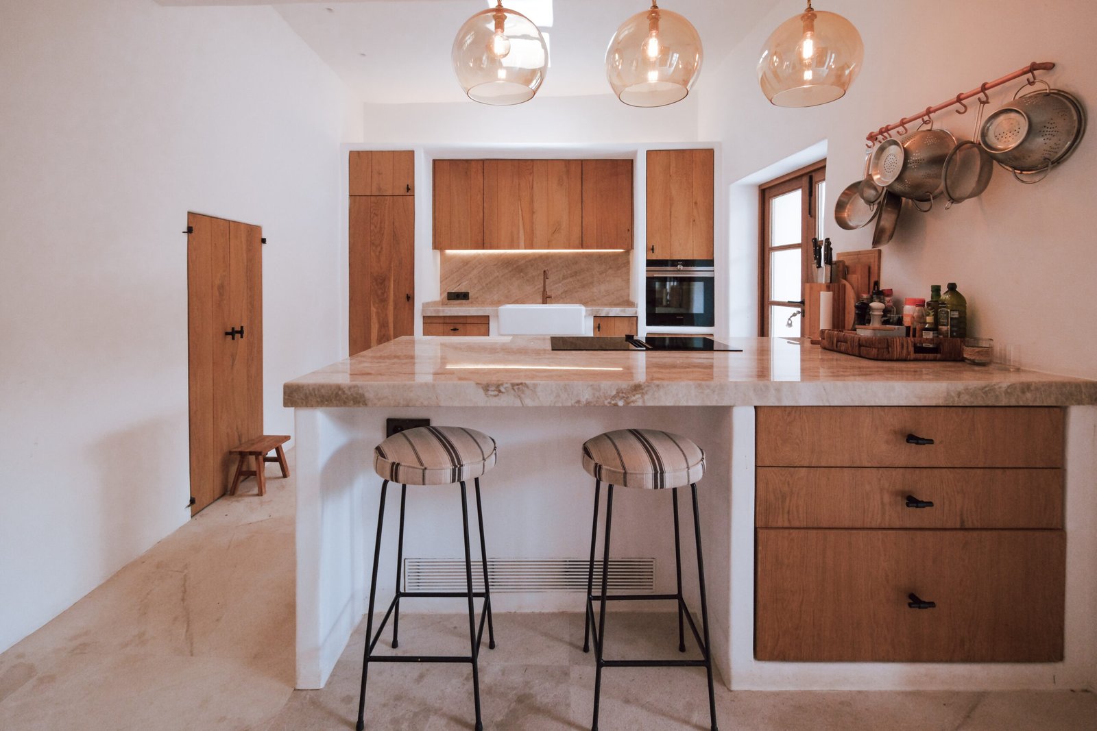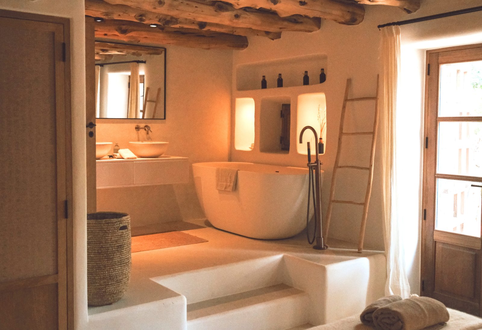 Set within a peaceful natural environment surrounded by pine forests, this refined finca offers a unique blend of organic design, modern comfort, and authentic Ibiza charm. Designed with a strong focus on natural materials and soft architectural lines, the property creates a calm and grounded atmosphere that feels both elegant and inviting. The interiors are thoughtfully crafted, featuring custom built elements, integrated seating, and warm Sabina wood ceilings that preserve the heritage of the home while introducing a contemporary aesthetic. The open living spaces flow effortlessly into a minimalist kitchen with wooden cabinetry, marble surfaces, and high-quality integrated appliances, creating a functional yet visually harmonious environment. Five beautifully designed bedrooms offer a sense of tranquility and privacy, including a principal suite with an en suite bathroom and private balcony overlooking the surrounding nature. One of the suites features a distinctive outdoor bathroom with a rainfall shower and natural stone finishes, enhancing the connection between indoor and outdoor living. The exterior spaces are designed for relaxed Mediterranean living, with landscaped gardens, a spacious lawn, and a 10 meter swimming pool. A dedicated dining terrace with an outdoor kitchen and pizza oven provides the perfect setting for entertaining or enjoying quiet moments immersed in nature. This finca represents a rare opportunity to experience a lifestyle defined by privacy, design, and connection to the natural surroundings, while maintaining a high level of comfort and understated luxury.