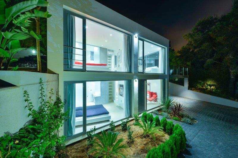 The property is composed of a main house and a separate annex, allowing guests and residents to enjoy both togetherness and privacy. Clean horizontal lines, extensive glass façades, and seamless transitions between indoor and outdoor areas create a sense of openness, light, and architectural harmony.